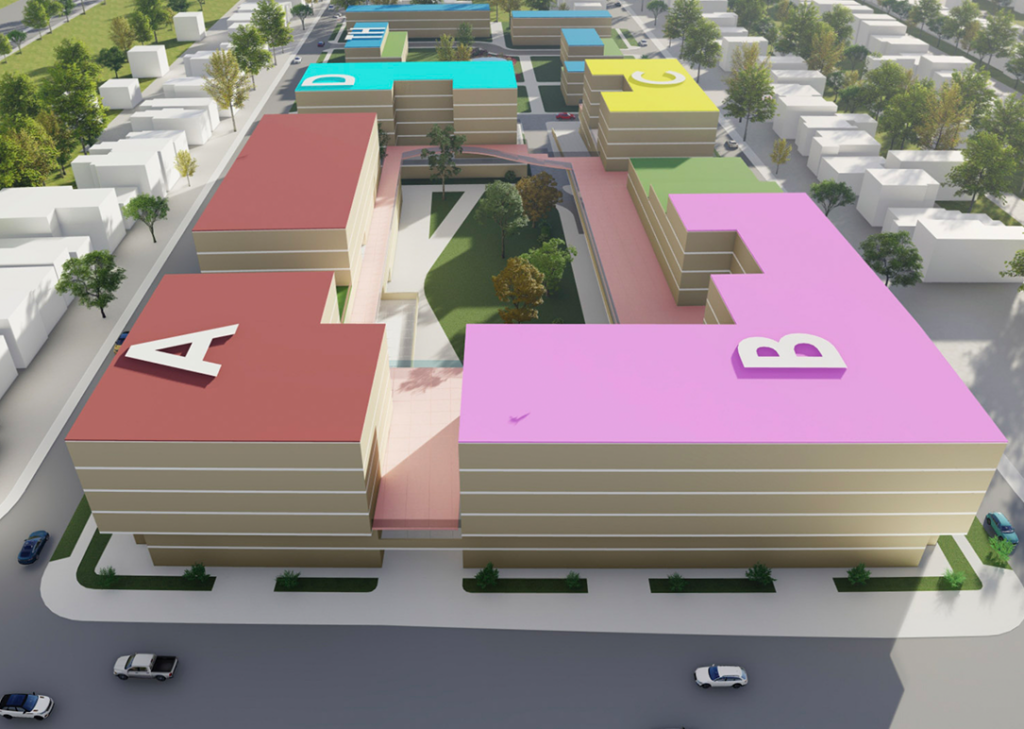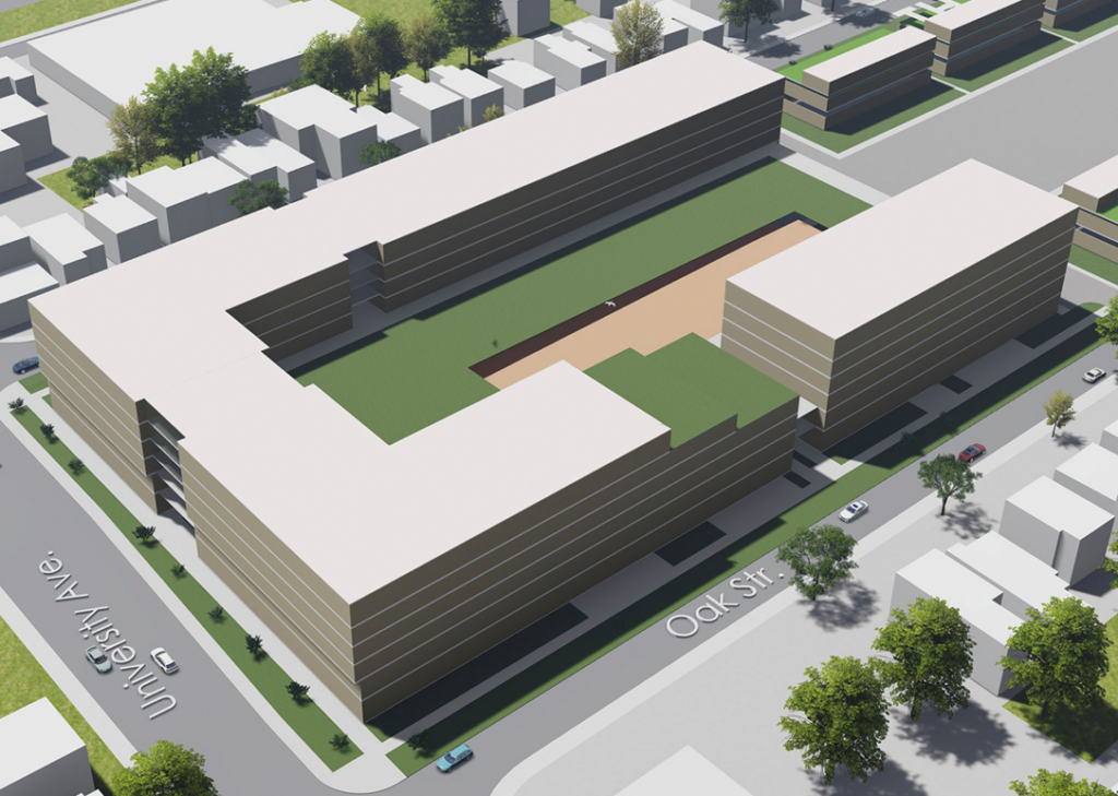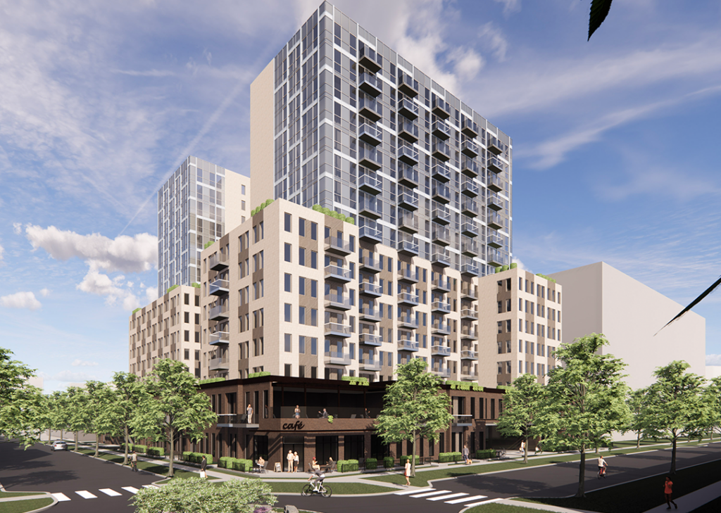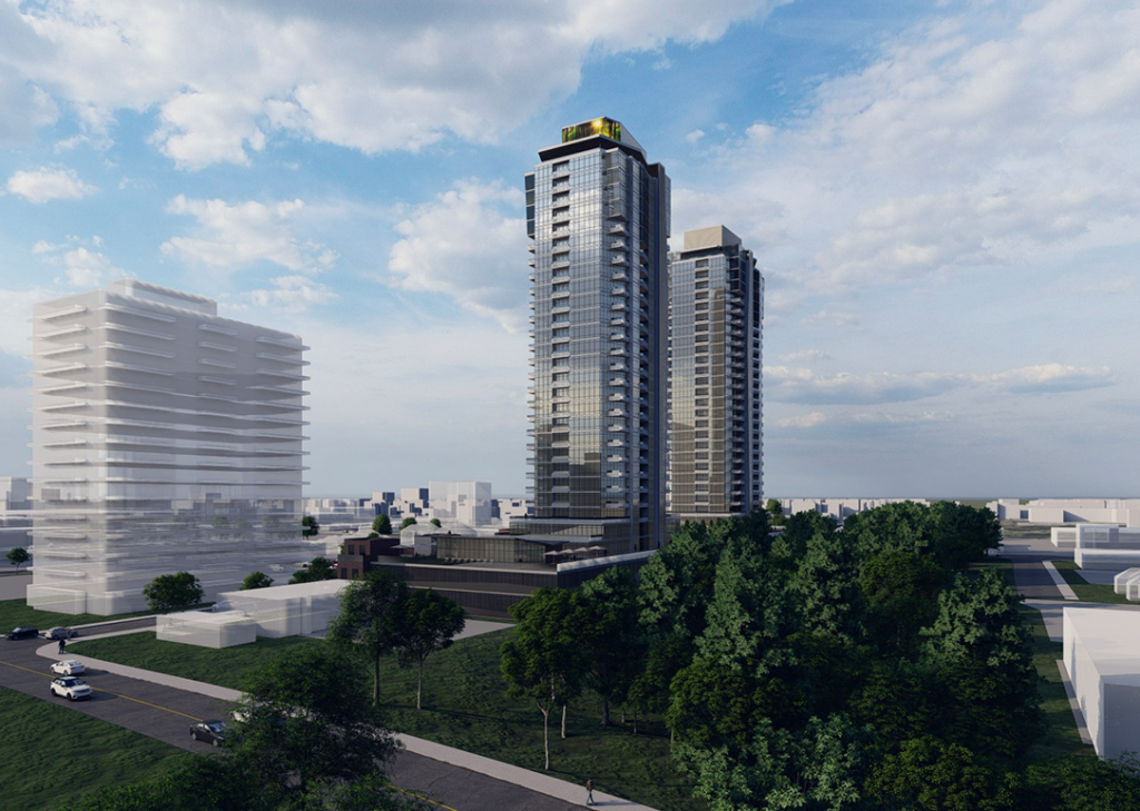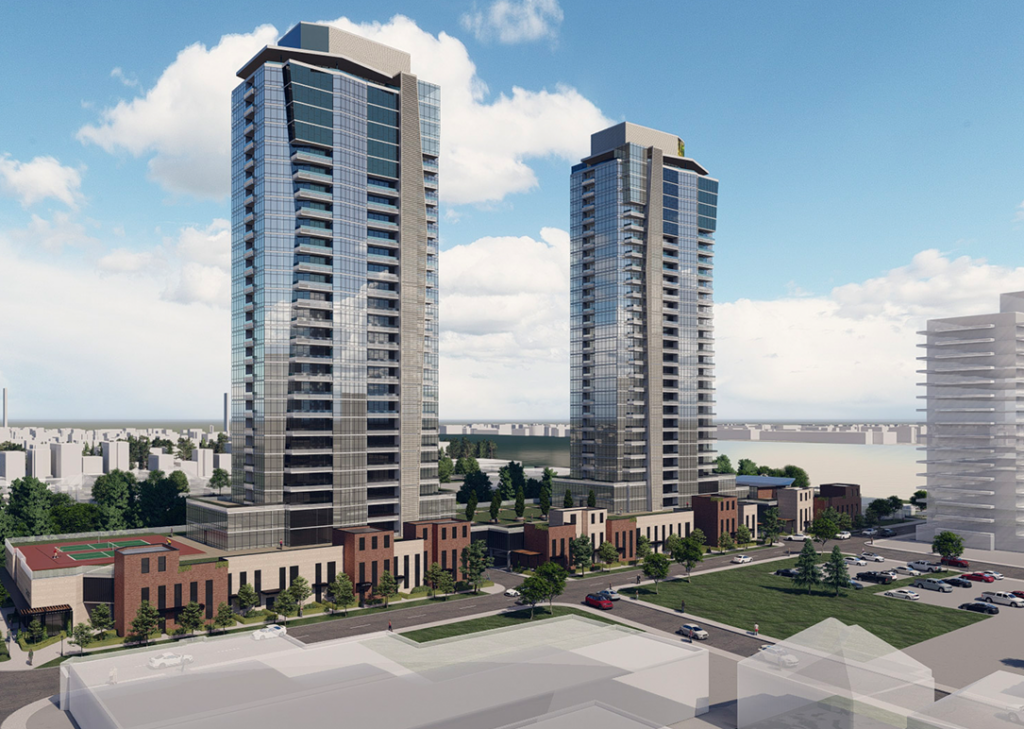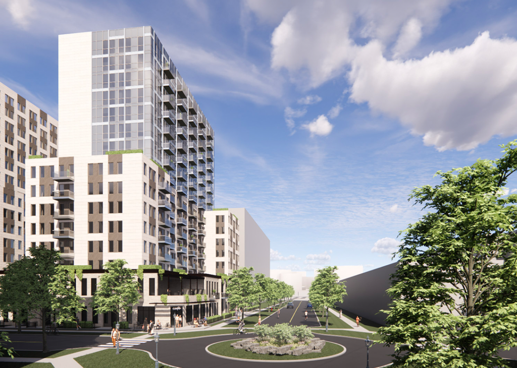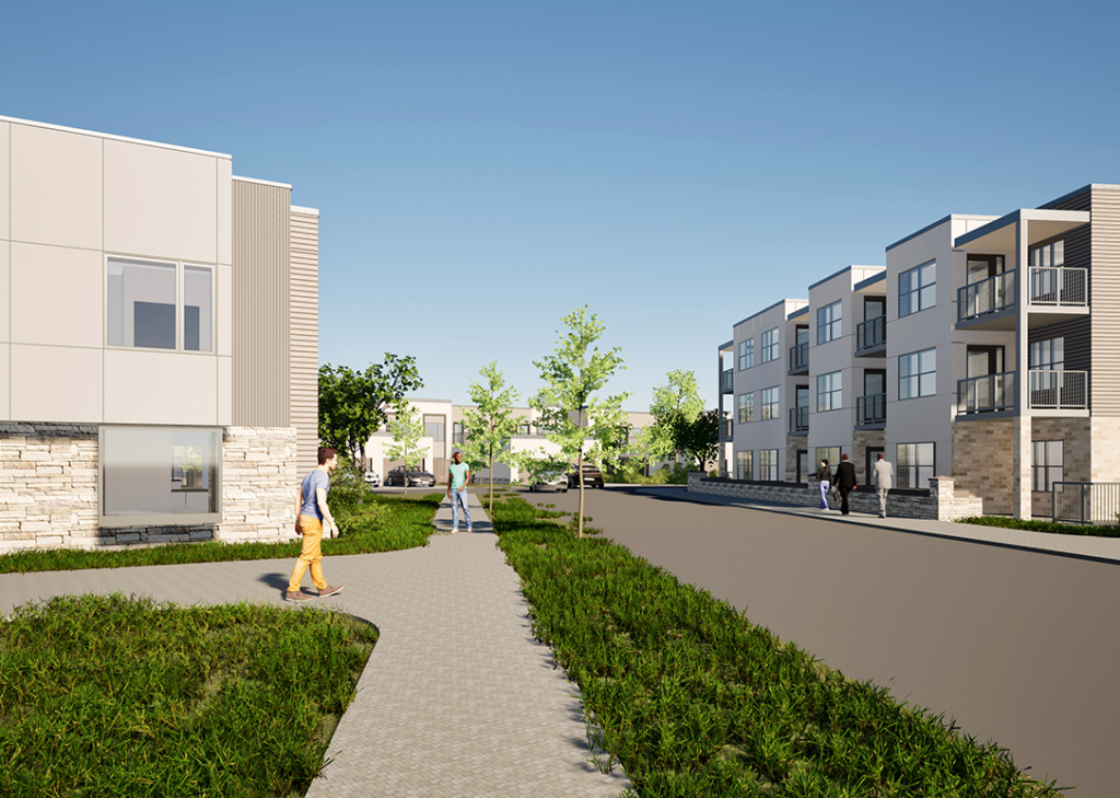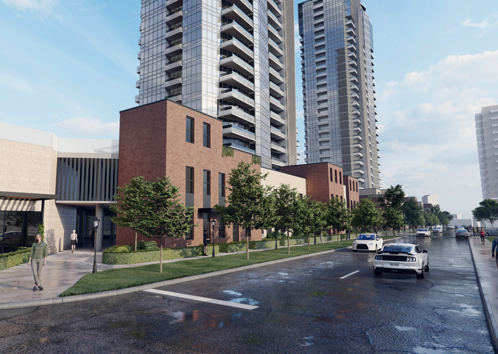 Located along a major artery to downtown Windsor, this mixed-use development integrates retail, rental housing, and commercial space, including office, medical, and neighbourhood-supportive uses. The design features a central green and park space that enhances microclimate conditions while providing shared amenities for residents. The project is organized into multiple phased mixed-use blocks, accommodating a range of housing types such as student housing, senior living, and affordable rental units. Varying zoning across the site allows for stacked townhomes in the lower-density rear areas, transitioning to higher-density development along the main street frontage.