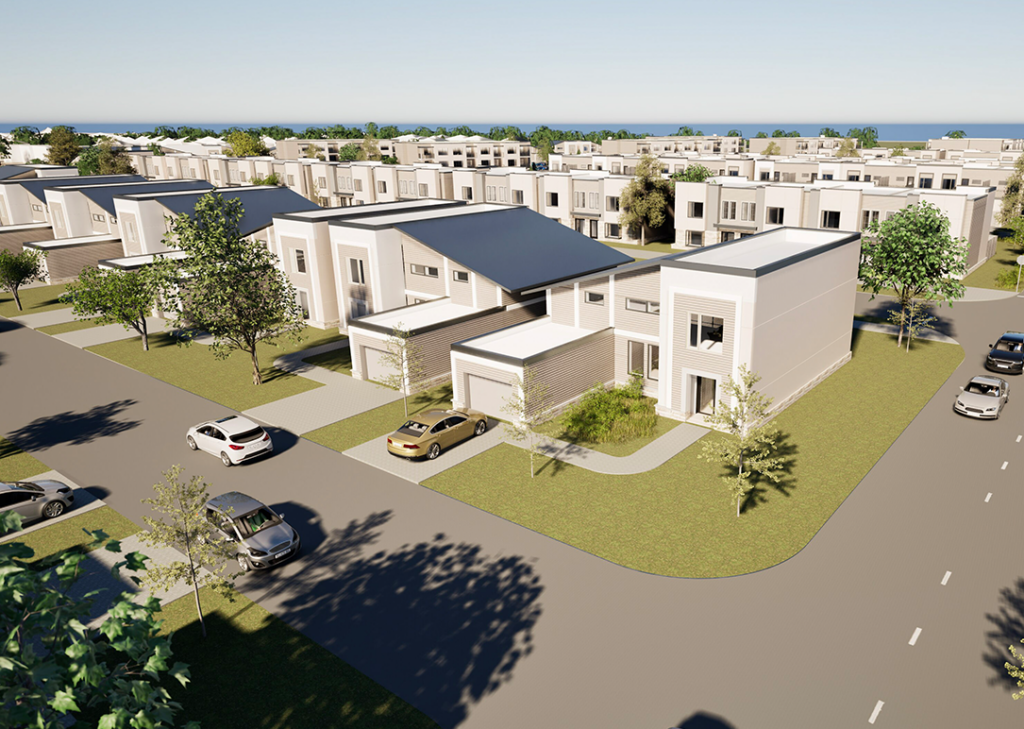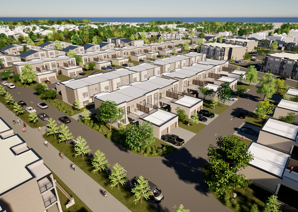 The project involves a master-planned residential community with single-family, semi-detached, townhouse, and rental apartments. It is centred around a mixed-use development containing a hotel and spa along with retail and bed-and-breakfast uses. The design is focused on a village-style theme with select nautical elements. Our scope involved working with a developer and engineering team and providing all architectural design for the entire development.